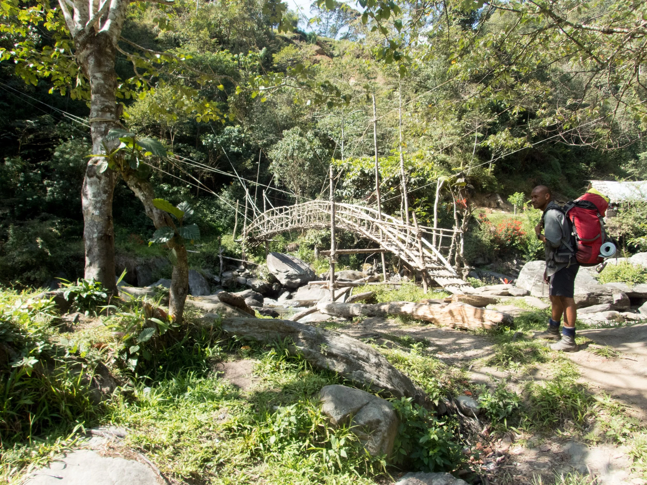 There were periods or sun on & off for most of the day and after lunch it was another tough climb for 30 minutes, then a little easier trek for 30 minutes, before a short break at the top of the final climb for the day. Then they trekked a down for 30 minutes into tonight's camping village over the top of a beautiful creek at 5pm. Day 3 was another tough day and they are now braving the chilly creek before enjoying some more popcorn.