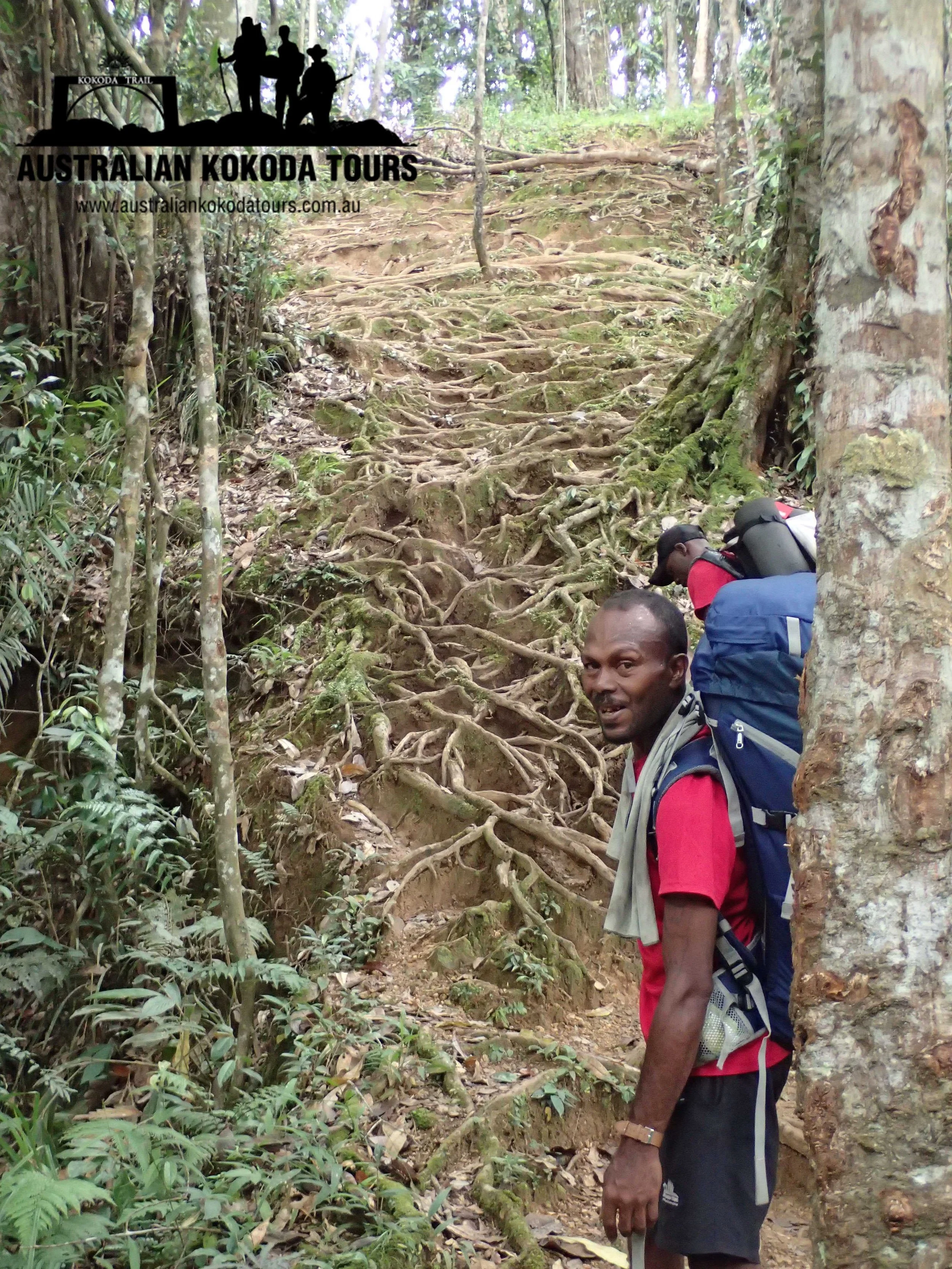 The day begun trekking out of camp this morning with a 60 minute climb and this definitely got the lungs warmed up. The trekkers were rewarded at the summit with some amazing views of the Maguli Ranges. It was here that the Japanese reported they could see the lights of Moresby. Then it was a long hike down and across for 90 minutes for a short break before another 60 minutes to visit some Japanese slit trenches. Then a short hike down to Ofi Creek campsite for morning tea.